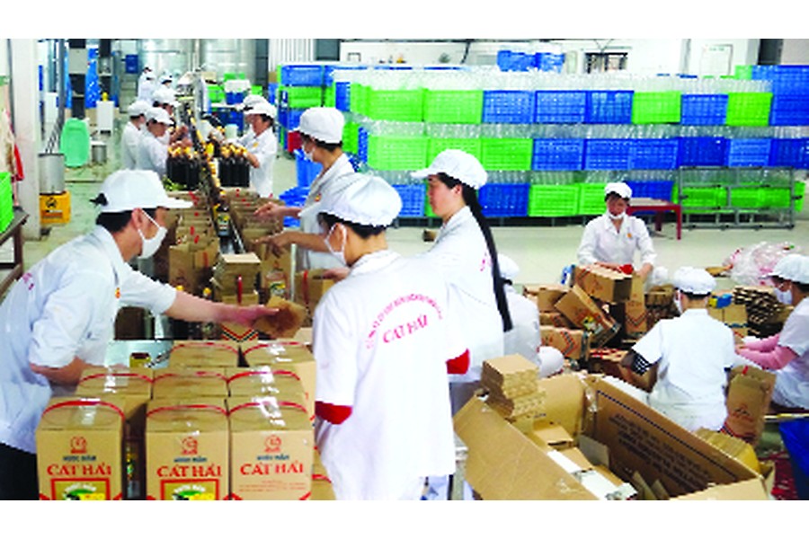 Ông Vũ Văn Cao, Phó giám đốc Công ty CP chế biến dịch vụ thuỷ sản Cát Hải, cho biết: “Năm 2002, công ty áp dụng Hệ thống quản lý an toàn vệ sinh thực phẩm quốc tế (HACCP) và ISO 9001:2008 vào quy trình sản xuất nước mắm. Từ chỗ chỉ có 2 loại nước mắm là mắm hạng 1 và hạng 2, hiện công ty có hơn 15 sản phẩm các loại như nước mắm chắt, cao đạm, cá quẩn, cá mực… Mới nhất là sản phẩm nước mắm cao cấp 50 độ đạm. Năm 2017, hơn 5,5 triệu lít nước mắm Cát Hải được tiêu thụ thông qua hơn 700 đại lý và điểm bán khắp 24 tỉnh, thành phố. Không chỉ tiêu thụ trong nước, mắm Cát Hải còn được xuất khẩu tới một số nước ở châu Á, Đông Âu… Năm 2018, công ty dự kiến sản xuất hơn 6 triệu lít phục vụ nhu cầu của thị trường.”,.
