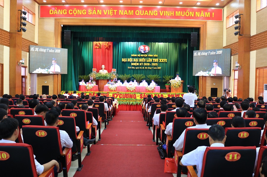Đại hội Đảng bộ huyện Vĩnh Bảo lần thứ 26, nhiệm kỳ 2020-2025 diễn ra trong 3 ngày 24, 25 và 26-7-2020.