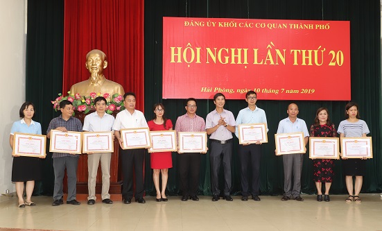 Nhân dịp này, Đảng ủy khối các cơ quan thành phố đã biểu dương, khen thưởng 25 chi bộ đã có thành tích xuất sắc trong việc nâng cao chất lượng sinh hoạt giai đoạn 2014-2019.