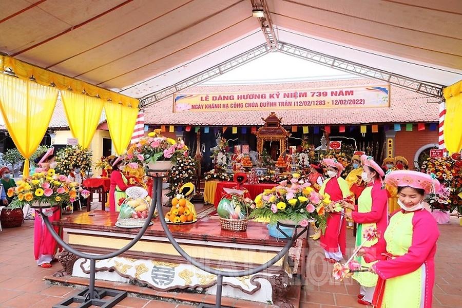 Tại lễ dâng hương, đông đảo nhân dân địa phương và những người con xa quê, khách thập phương dâng hương tri ân công lao to lớn của công chúa Quỳnh Trân đối với nhân dân địa phương.