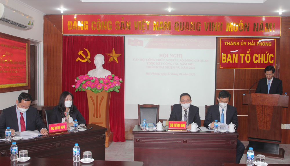 Sáng 7/1, Đảng uỷ cơ quan Ban Tổ chức Thành ủy tổ chức Hội nghị cán bộ, công chức, người lao động cơ quan; tổng kết công tác năm 2021, triển khai nhiệm vụ năm 2022. Đồng chí Đào Trọng Đức, Ủy viên Ban Thường vụ Thành ủy, Trưởng Ban Tổ chức Thành ủy chủ trì Hội nghị.