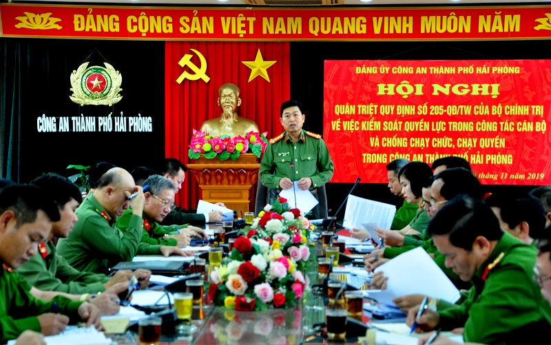 Chiều ngày 29-11, Đảng ủy Công an thành phố tổ chức hội nghị quán triệt Quy định số 205-QĐ/TW của Bộ Chính trị về việc kiểm soát quyền lực trong công tác cán bộ, chống chạy chức, chạy quyền. Đại tá Vũ Thanh Chương, Bí thư Đảng ủy, Giám đốc CATP chủ trì hội nghị.