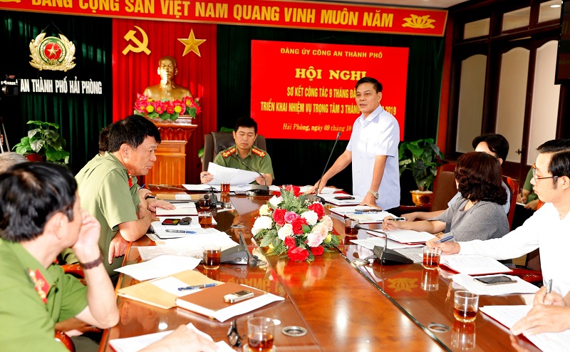 Chiều 9-10, Đảng ủy Công an thành phố tổ chức hội nghị sơ kết công tác 9 tháng đã qua; triển khai nhiệm vụ trọng tâm 3 tháng cuối năm 2019. Phó bí thư Thành ủy, Chủ tịch UBND TP Nguyễn Văn Tùng dự và chỉ đạo hội nghị. Đại tá Vũ Thanh Chương, Bí thư Đảng ủy, Giám đốc CATP chủ trì hội nghị.