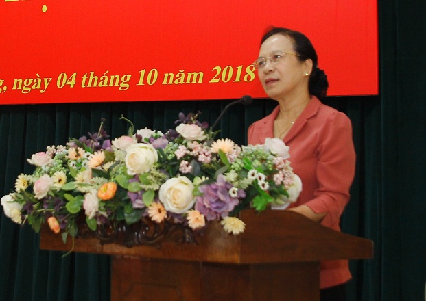 Phó bí thư thường trực Thành ủy Nguyễn Thị Nghĩa phát biểu tại hội nghị