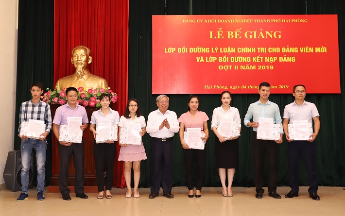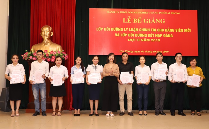 Sáng 4-10 tại hội trường các Ban Đảng 128 Lạch Tray, Đảng ủy khối doanh nghiệp thành phố tổ chức bế giảng lớp bổi dưỡng lý luận chính trị cho đảng viên mới và lớp bồi dưỡng kết nạp Đảng đợt 2-2019.