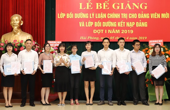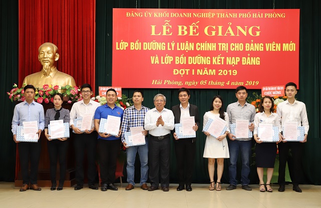 Sáng 5-4 tại hội trường các Ban Đảng 128 Lạch Tray, Đảng ủy khối doanh nghiệp thành phố tổ chức bế giảng lớp bổi dưỡng lý luận chính trị cho đảng viên mới và lớp bồi dưỡng kết nạp Đảng đợt 1-2019. Đồng chí Bùi Trung Nghĩa –Bí thư Đảng ủy khối chủ trì hội nghị.