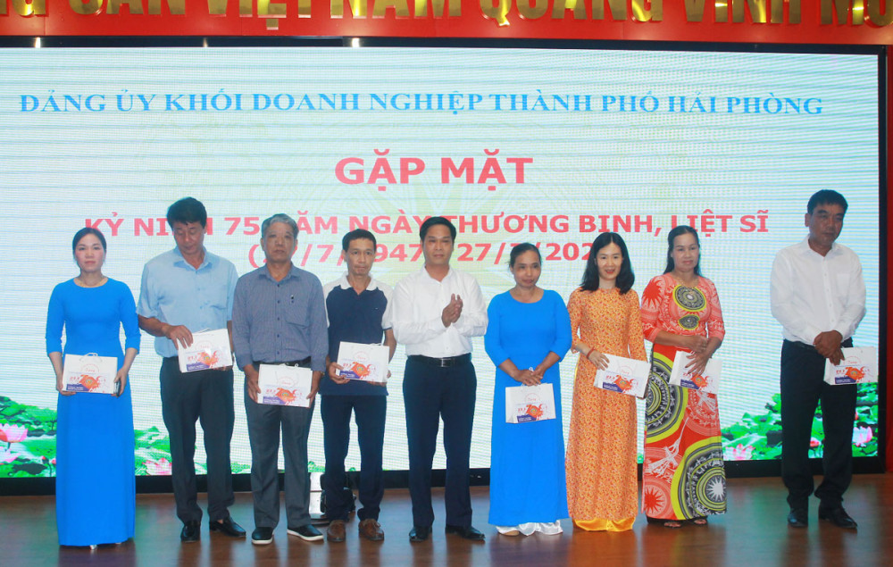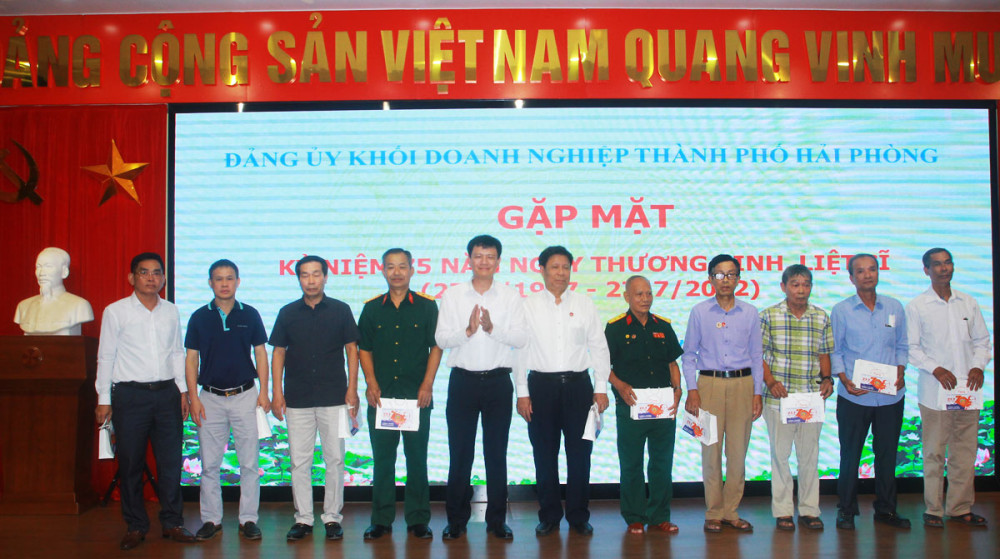 Chiều 26/7, Đảng ủy Khối Doanh nghiệp thành phố tổ chức gặp mặt kỷ niệm 75 năm Ngày thương binh, liệt sỹ (27/7/1947-27/7/2022) và tặng quà cho các đồng chí thương binh và con các Anh hùng liệt sỹ hiện đang là cán bộ, đảng viên, người lao động trong Khối. Đồng chí Đỗ Quang Khoa, Bí thư Đảng ủy Khối Doanh nghiệp thành phố chủ trì cuộc gặp mặt.