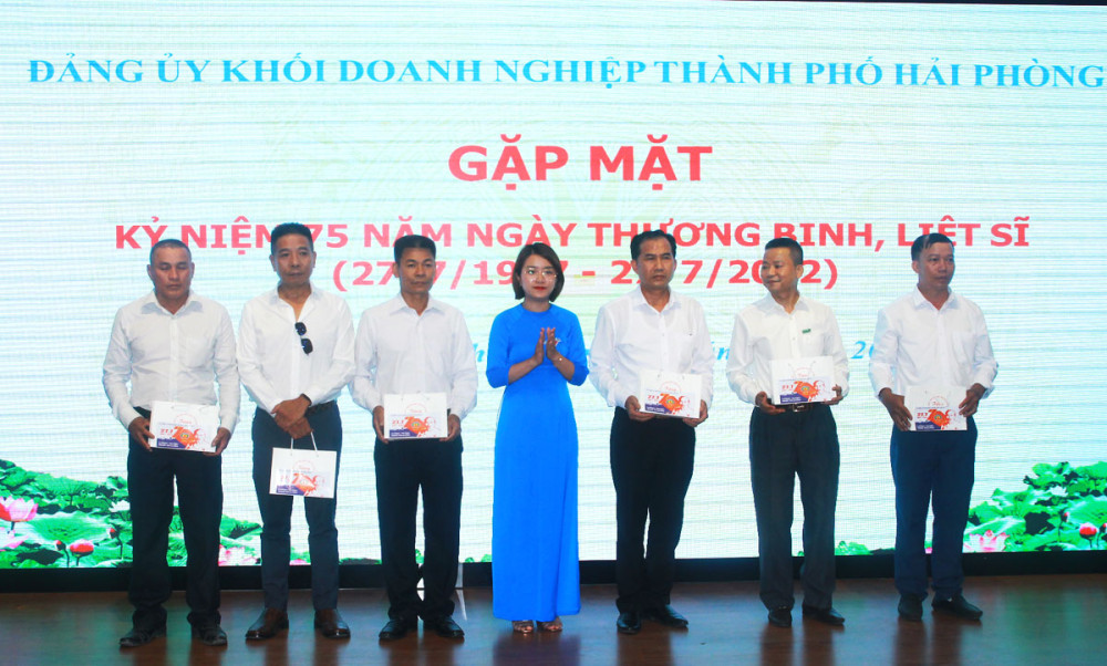 Nhân dịp này, Đảng ủy Khối Doanh nghiệp thành phố đã trao tặng 56 suất quà cho các đồng chí thương binh và con các Anh hùng liệt sỹ hiện đang là cán bộ, đảng viên, người lao động trong Khối.