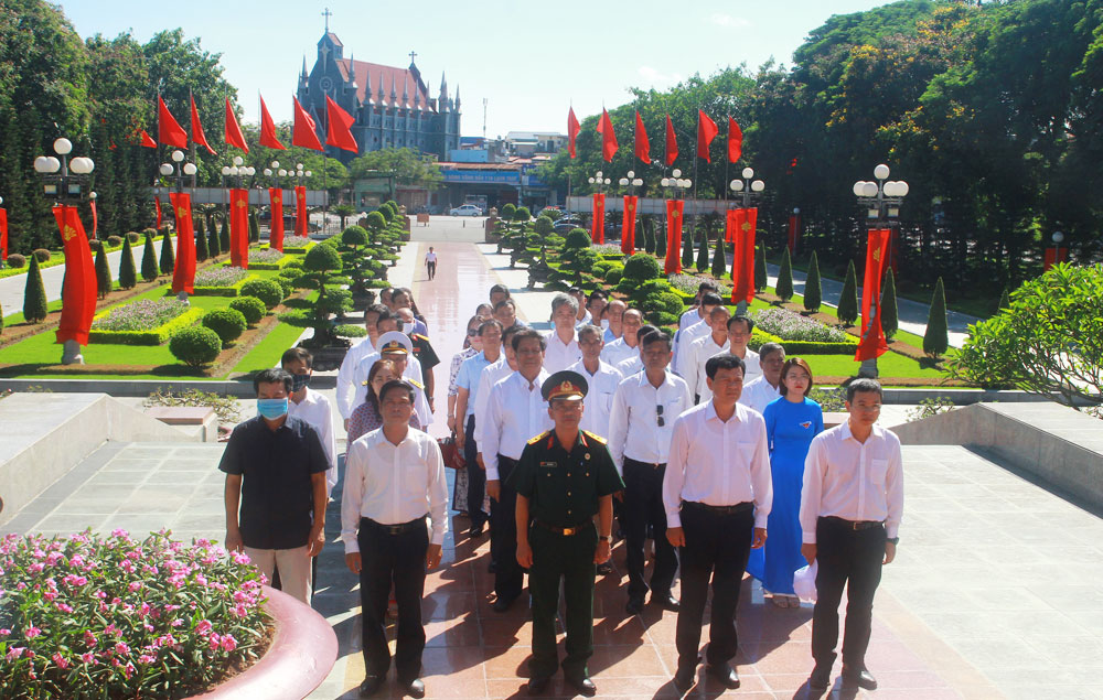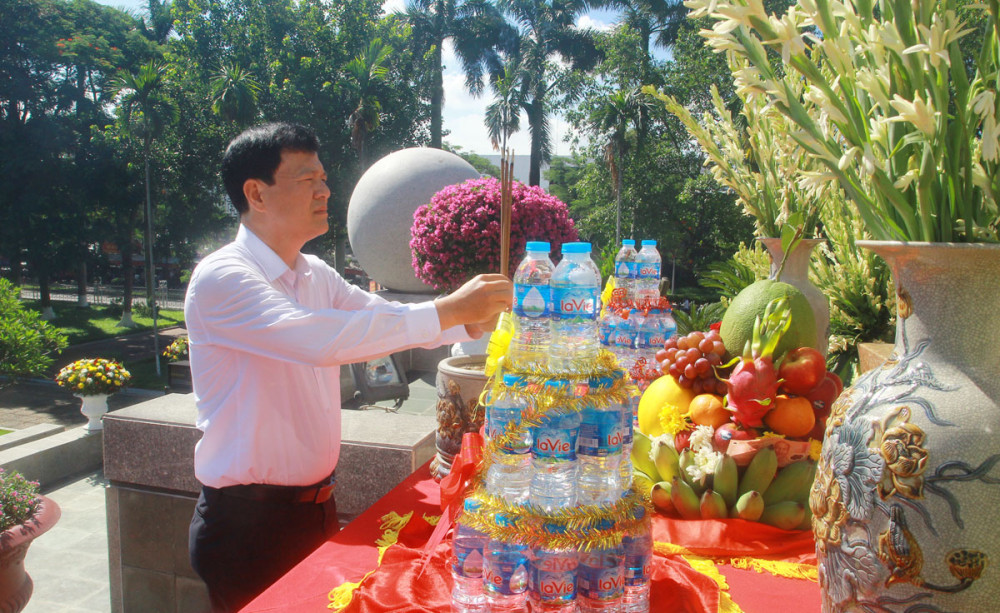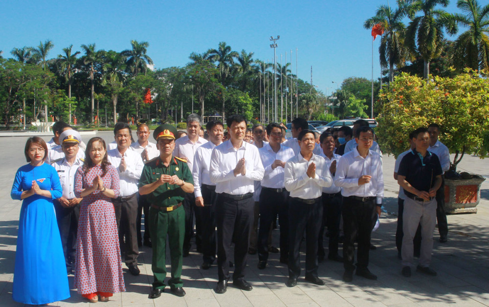 Tại Đài tưởng niệm các Anh hùng liệt sỹ thành phố, trong không khí trang nghiêm thành kính, các đại biểu đã dành phút mặc niệm tưởng nhớ anh linh các Anh hùng liệt sỹ, những người con ưu tú của dân tộc đã không tiếc xương máu vì độc lập, tự do của Tổ quốc và hạnh phúc của Nhân dân.