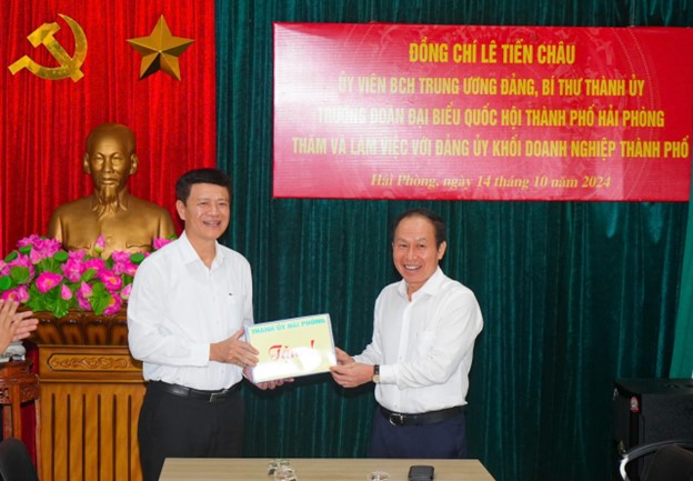 Chiều 14/10, đồng chí Lê Tiến Châu, Ủy viên Trung ương Đảng, Bí thư Thành ủy, Trưởng Đoàn ĐBQH Hải Phòng chủ trì làm việc với Đảng ủy Khối Doanh nghiệp thành phố về kết quả thực hiện các chỉ tiêu Nghị quyết Đại hội III Đảng bộ Khối nhiệm kỳ 2020-2025; kết quả thực hiện nhiệm vụ 9 tháng năm 2024, phương hướng nhiệm vụ trong thời gian tới.