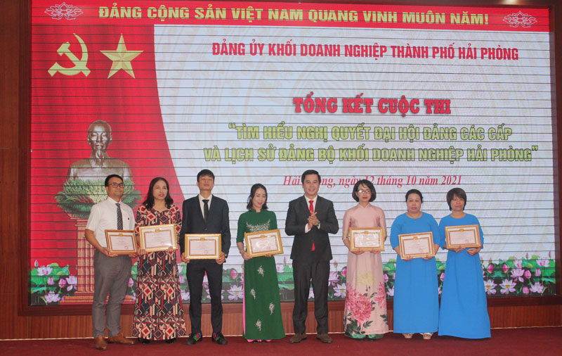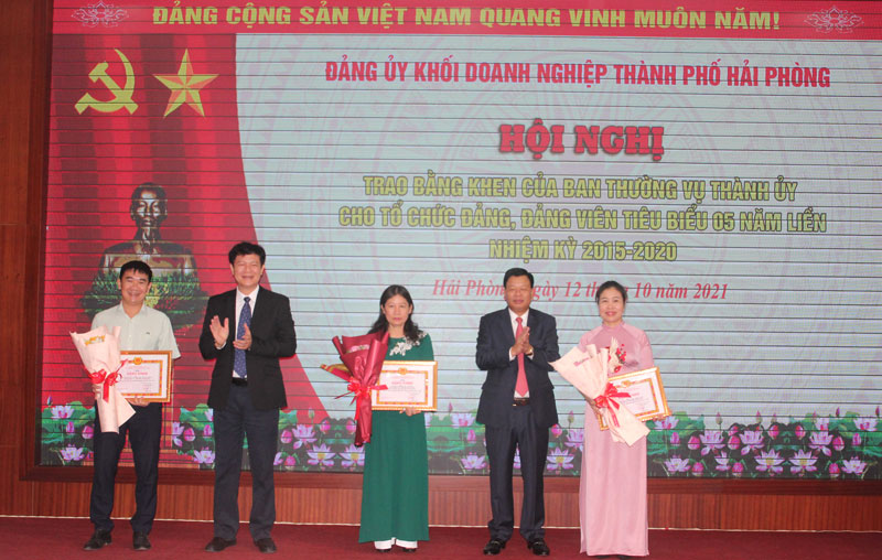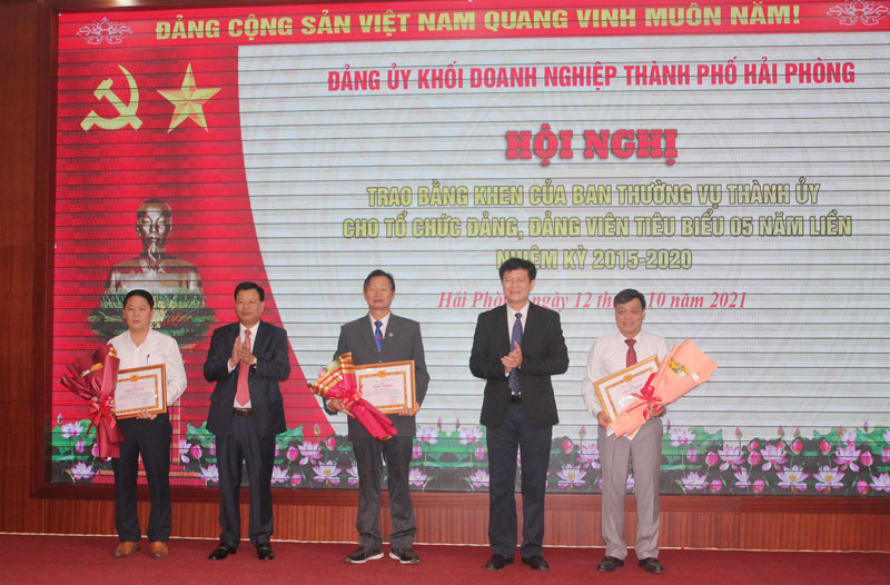 Cũng tại Hội nghị, Đảng ủy Khối đã tổ chức trao Huy hiệu Đảng đợt 2/9/2021 tặng 9 đảng viên; trao Bằng khen của Ban Thường vụ Thành ủy tặng 3 tổ chức Đảng “trong sạch, vững mạnh” và 3 đảng viên “hoàn thành xuất sắc nhiệm vụ tiêu biểu” 5 năm liền, nhiệm kỳ 2015-2020; tổng kết và trao giải cuộc Cuộc thi trực tuyến “Tìm hiểu Nghị quyết Đại hội Đảng bộ các cấp và lịch sử Đảng bộ Khối Doanh nghiệp Hải Phòng”. Đồng thời phát động ủng hộ quỹ “Vì người nghèo”.