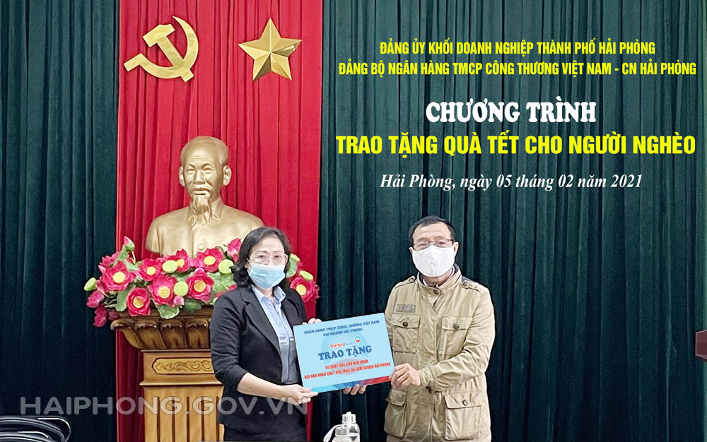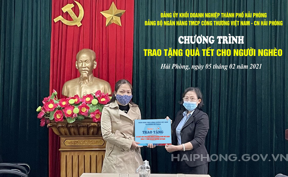 Tiếp tục các hoạt động chăm lo đời sống, vật chất cho các gia đình có hoàn cảnh khó khăn trên địa bàn thành phố. Nhân dịp Tết Nguyên đán Tân Sửu 2021, sáng 5/2, Đảng ủy Khối Doanh nghiệp thành phố tổ chức trao 100 suất quà cho các gia đình nạn nhân thuộc Hội nạn nhân chất độc màu da cam/ Dioxin Hải Phòng và các công nhân có hoàn cảnh khó khăn làm việc tại Công ty TNHH Công nghiệp Giày Aurora Việt Nam, với tổng giá trị quà tặng 50 triệu đồng.