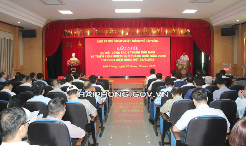 Sáng 7/10, Đảng ủy Khối Doanh nghiệp thành phố tổ chức Hội nghị sơ kết công tác 9 tháng đầu năm; triển khai nhiệm vụ 3 tháng cuối năm 2020 và trao Huy hiệu Đảng đợt 2/9/2020. Dự Hội nghị có đồng chí Phạm Văn Mợi, Ủy viên Ban Thường vụ Thành ủy, Trưởng Ban Quản lý Khu Kinh tế Hải Phòng.