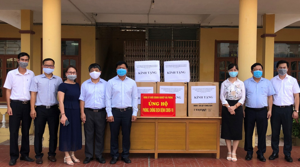 Sáng 10/9, tại trường Tiểu học Đặng Cương, Đoàn công tác của Đảng ủy Khối Doanh nghiệp thành phố do đồng chí Trần Thị Quỳnh Trang, Bí thư Đảng ủy Khối Doanh nghiệp thành phố làm Trưởng đoàn cùng đại diện lãnh đạo Bưu điện thành phố, Công ty Cổ phần kinh doanh nước sạch số 2 đã trao tặng huyện An Dương 10.000 khẩu trang y tế và 2.000 khẩu trang vải phục vụ công tác phòng chống dịch COVID-19 tại các trường học trên địa bàn huyện.