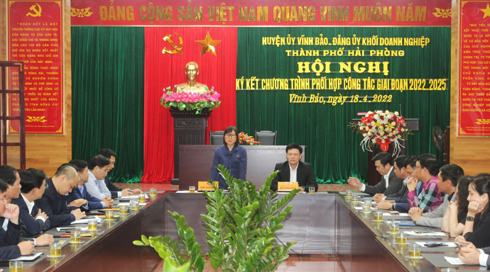 Định kỳ hằng năm Đảng ủy Khối Doanh nghiệp thành phố và Huyện ủy Vĩnh Bảo sẽ sơ kết đánh giá kết quả phối hợp thực hiện nhiệm vụ, đề xuất phương hướng, nhiệm vụ trong thời gian tiếp theo.