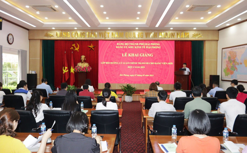 Sáng 7/5, Đảng ủy Khu kinh tế Hải Phòng tổ chức khai giảng Lớp bồi dưỡng lý luận chính trị dành cho đảng viên mới đợt I năm 2023. Tham dự có hơn 70 đảng viên mới của các công ty trong Khu công nghiệp, Khu kinh tế.