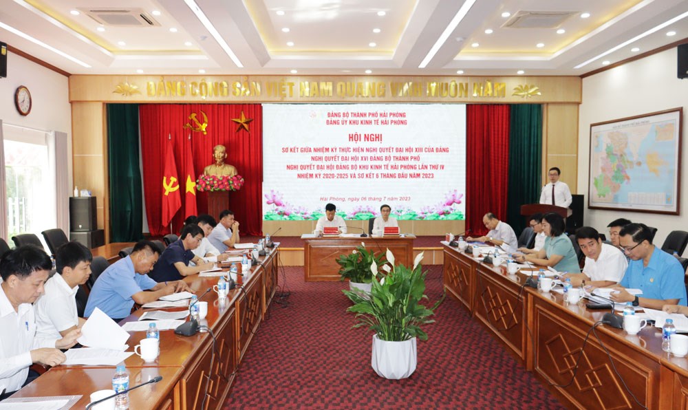 Sáng 6/7, Đảng ủy Khu kinh tế Hải Phòng tổ chức Hội nghị Ban Chấp hành (mở rộng) sơ kết giữa nhiệm kỳ kết quả thực hiện Nghị quyết Đại hội XIII của Đảng, Nghị quyết Đại hội XVI Đảng bộ thành phố, Nghị quyết Đại hội IV Đảng bộ Khu kinh tế Hải Phòng, nhiệm kỳ 2020-2025 và sơ kết công tác 6 tháng đầu năm; nhiệm vụ, giải pháp trọng tâm 6 tháng cuối năm 2023.