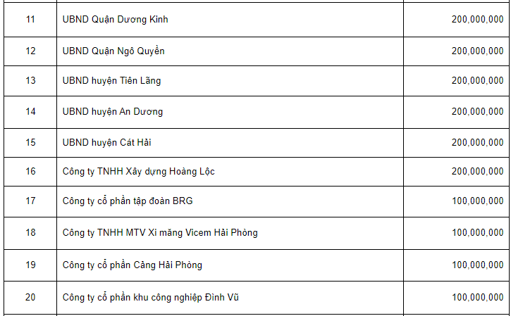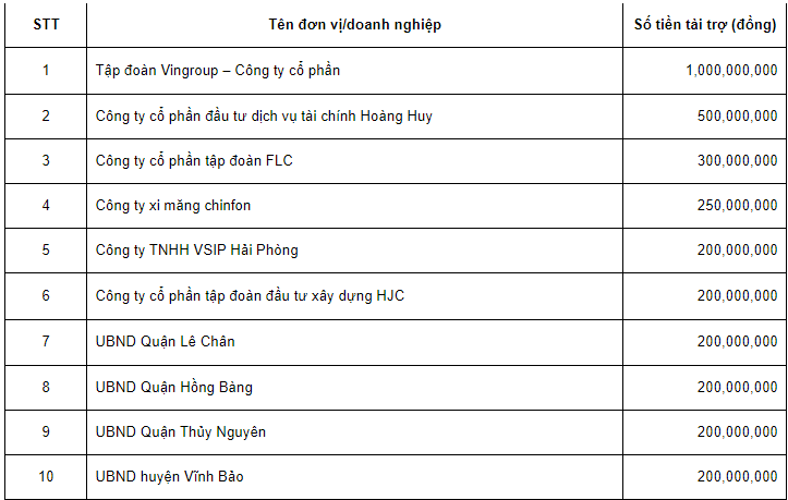 Tổng số tiền tài trợ: 6,795,000,000 đồng.