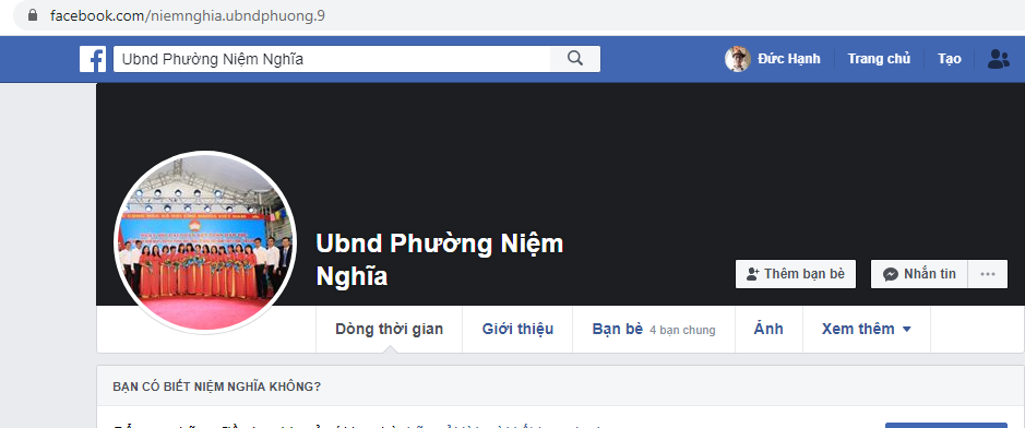 Tên trang Facebook: Ubnd Phường Niệm Nghĩa.