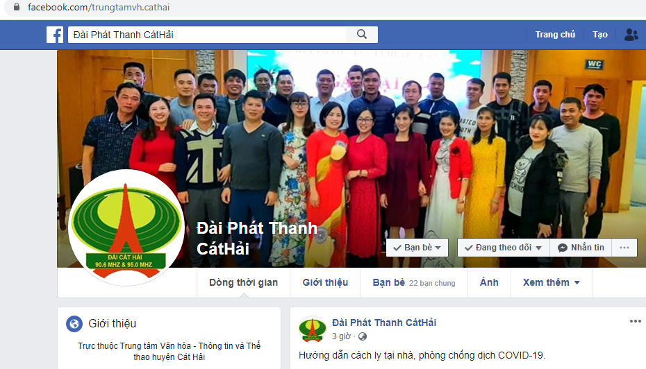 Tên trang Facebook: Trung tâm Văn hóa – Thông tin và Thể thao huyện Cát Hải.