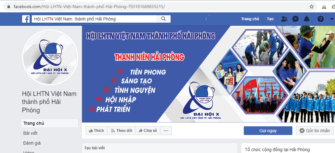 Tên trang Facebook: Hội LHTN Việt Nam thành phố Hải Phòng.