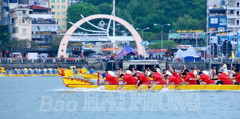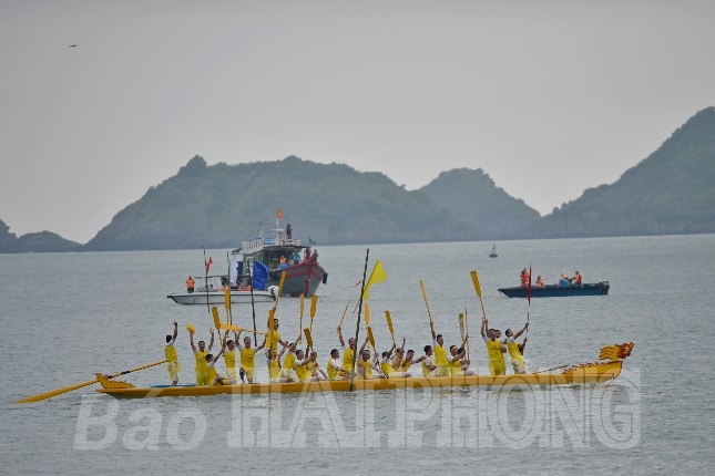 Và một trong những hoạt động sôi động trong khuôn khổ chương trình Khai mạc du lịch Cát Bà chính giải đua thuyền Rồng huyện Cát Hải tranh cúp Báo Hải Phòng lần thứ 26 năm 2022 diễn ra chiều 7/5. Giải đua thuyển Rồng trở lại sau 2 năm tạm hoãn vì dịch bệnh COVID-19, thu hút sự quan tâm đông đảo khách du lịch, người dân địa phương. Trên vịnh trung tâm thị trấn Cát Bà, 4 đội đua đến từ các xã, thị trấn của huyện Cát Hải khiến mặt vịnh “dậy sóng” bởi những màn đua tài, so kè nhau quyết liệt với khoảng cách chỉ quá thân thuyền. Trên bờ, bao cặp mắt đổ dồn vào “đường đua xanh”, bao trái tim hồi hộp theo từng nhịp chèo để rồi vỡ òa khi đội nhà vượt lên đối thủ giành chiến thắng. “Quá tuyệt vời, mặc dù sự quyết liệt của các đội đua khiến nhiều phen tôi cảm thấy thót tim”, anh Hà Văn Tĩnh, khách du lịch đến từ tỉnh Thái Bình tếu táo sau khi kết thúc cuộc đua trên biển.