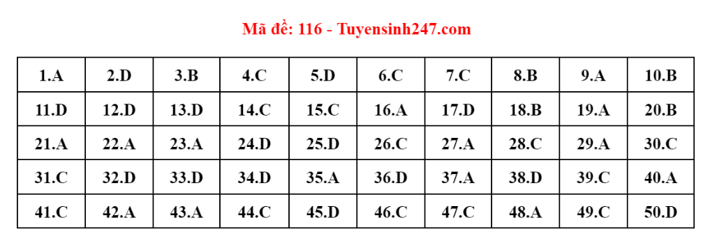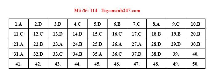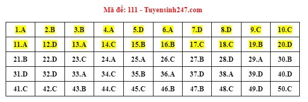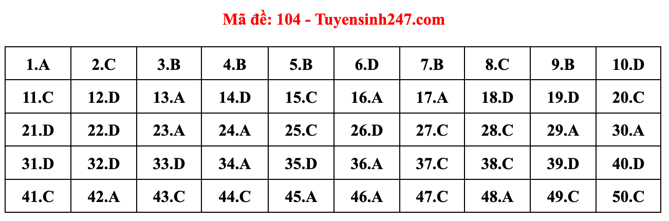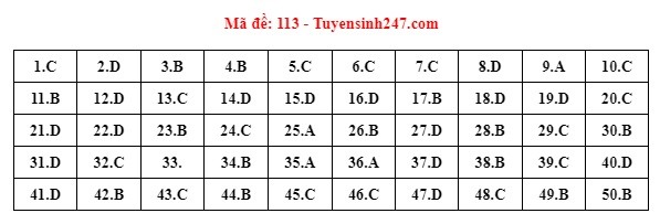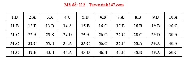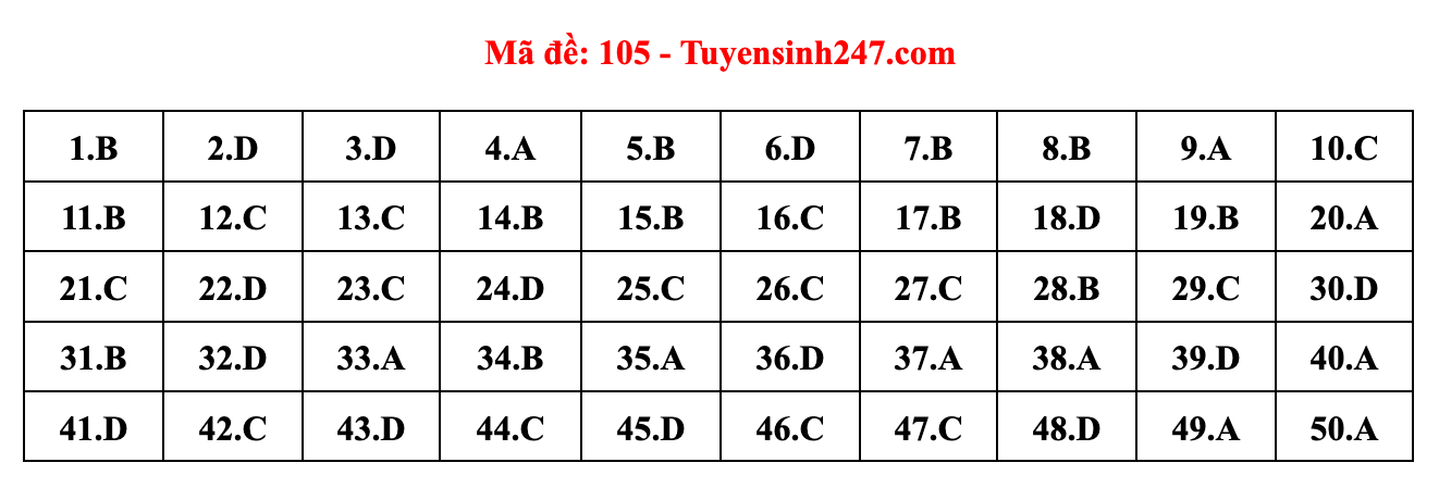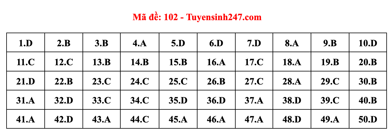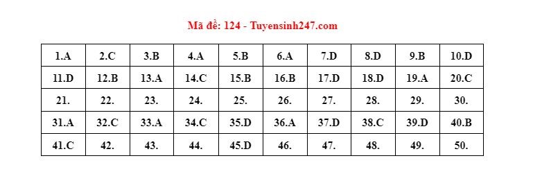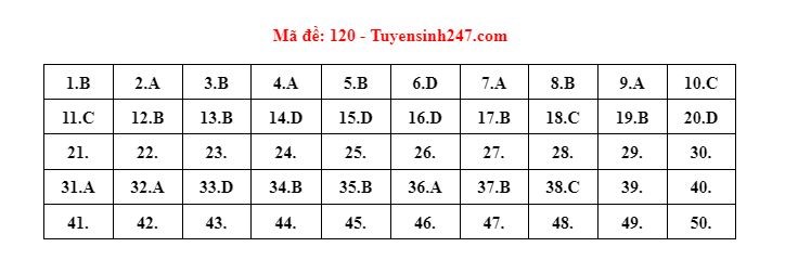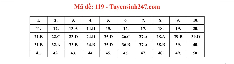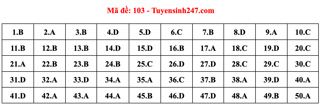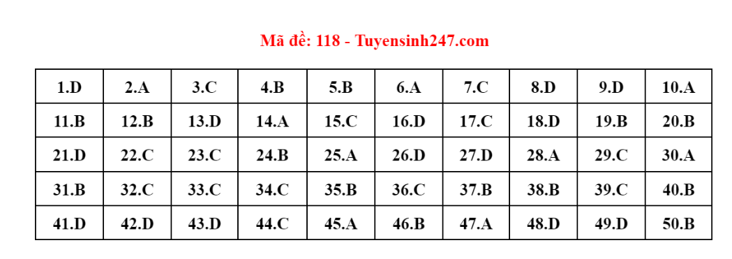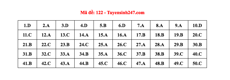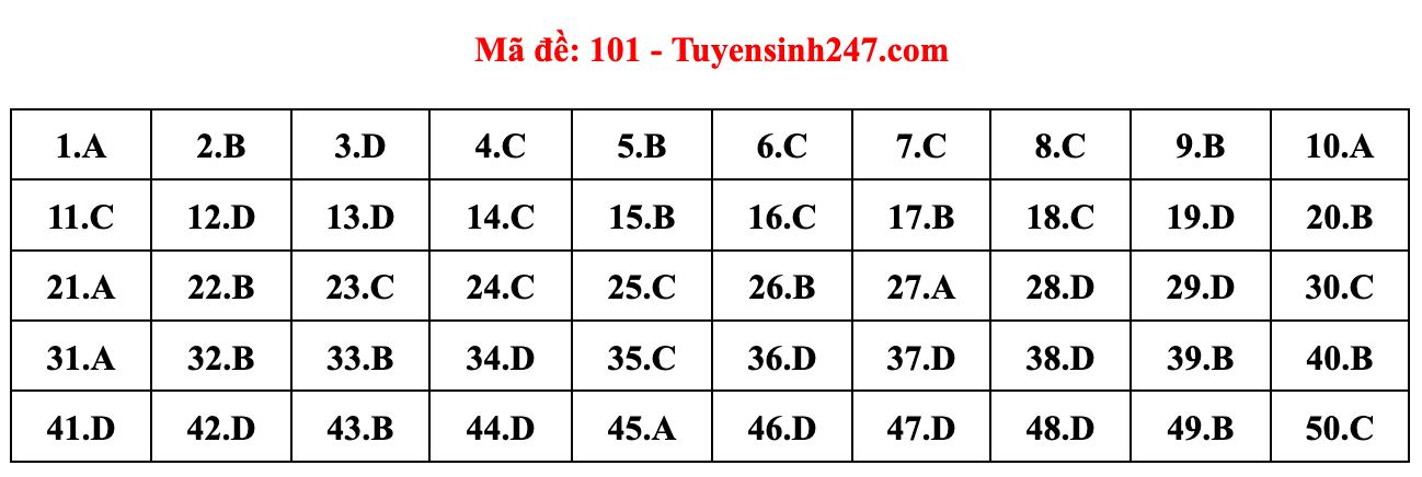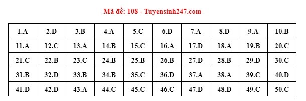 Gợi ý đáp án do giáo viên của Hệ thống giáo dục HOCMAI và Tuyensinh247 thực hiện (Tiếp tục cập nhật, phụ huynh click vào từng mã đề để xem đáp án)