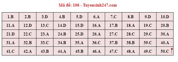 . Gợi ý đáp án môn Toán mã đề 106