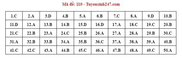 . Gợi ý đáp án môn Toán mã đề 110