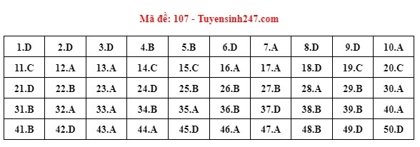 . Gợi ý đáp án môn Toán mã đề 107