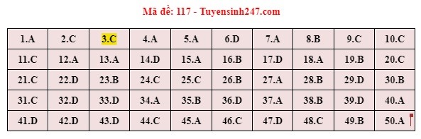 . Gợi ý đáp án môn Toán mã đề 117