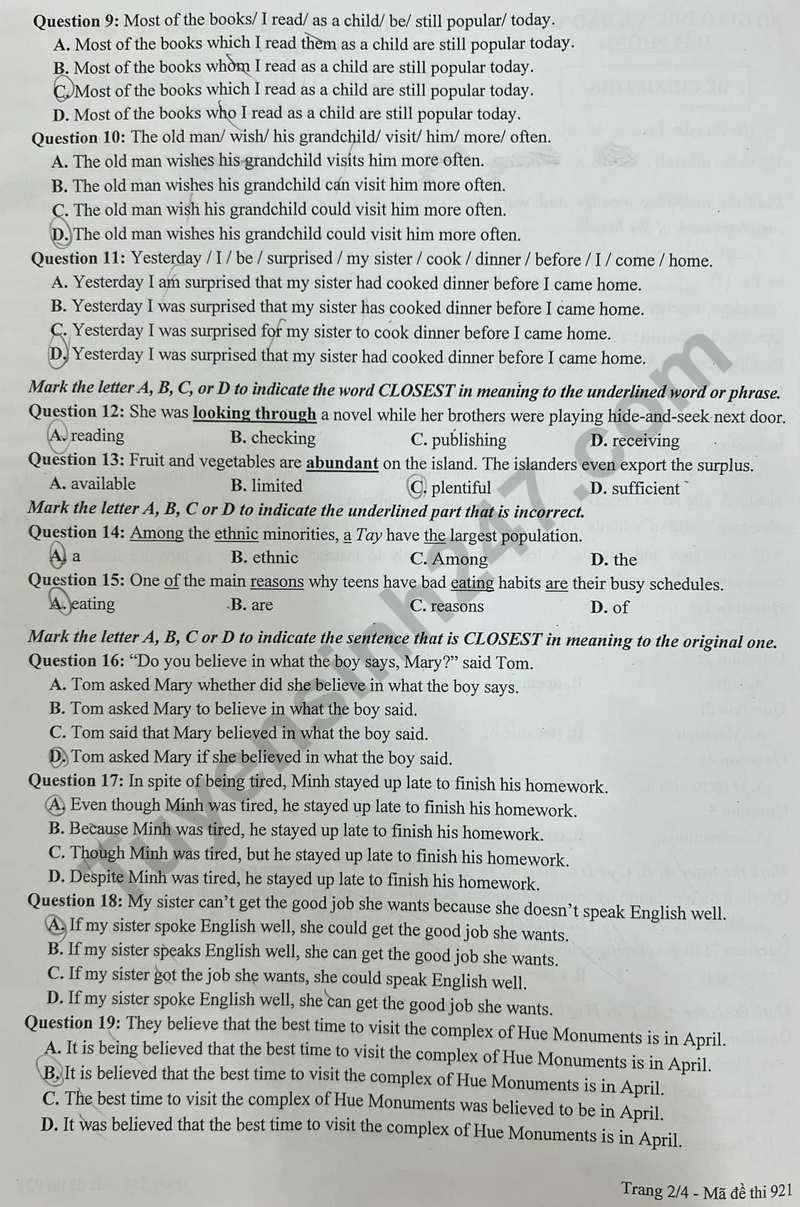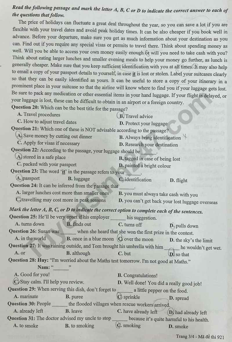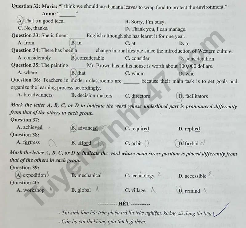 Đáp án, đề thi môn tiếng Anh vào lớp 10 TP Hải Phòng. Ảnh: Tuyensinh247