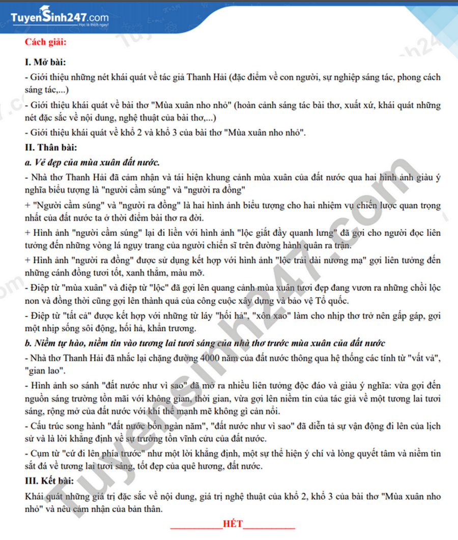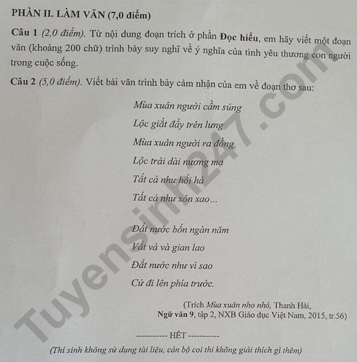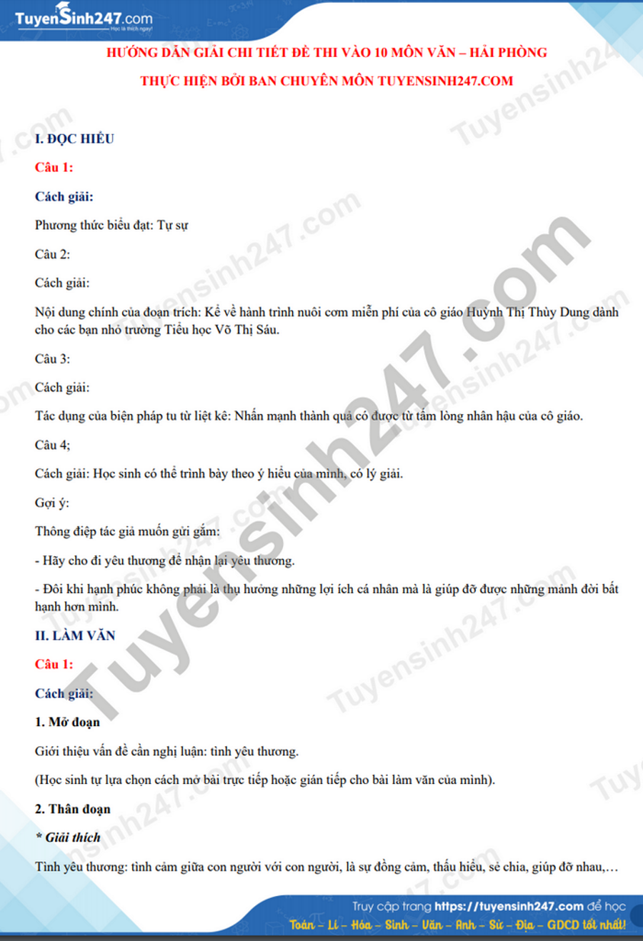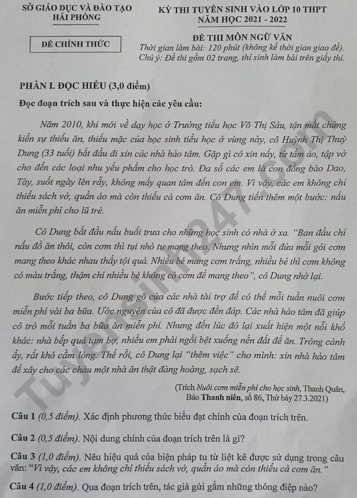 Kỳ thi tuyển sinh vào lớp 10 THPT năm nay tại Hải Phòng có tổng cộng 21.177 học sinh đăng ký thi. Dưới đây là đáp án gợi ý môn Ngữ văn do ban chuyên môn Tuyensinh247 thực hiện.