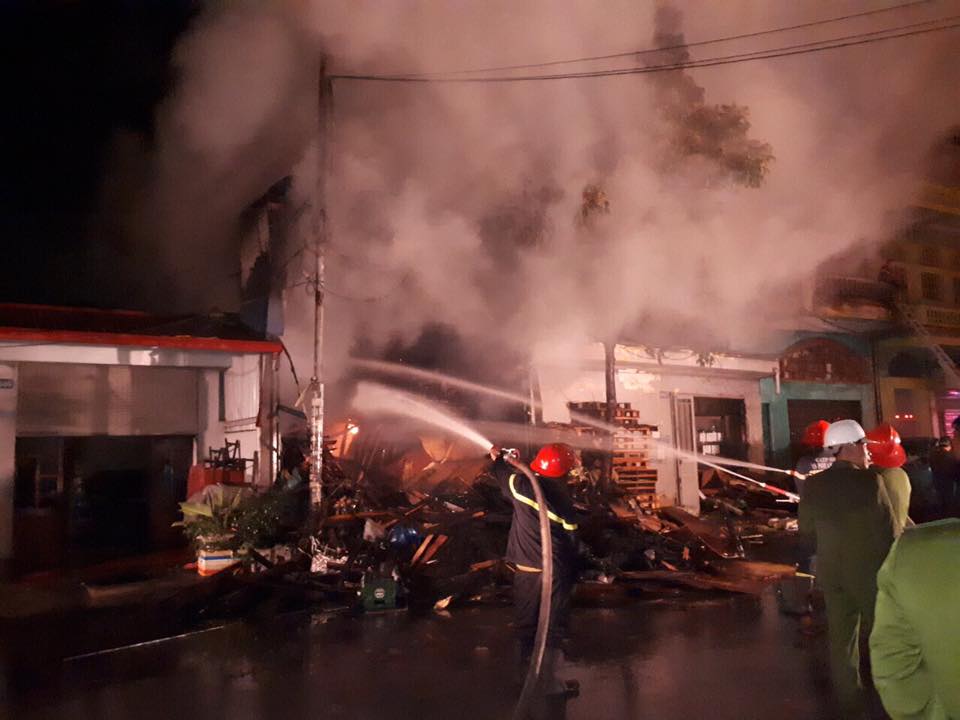 Lực lượng Cảnh sát PCCC đã huy động thêm 1 xe cẩu, 1 xe xúc để lôi toàn bộ nguyên liệu ra khỏi nhà số 644 đường Lê Thánh Tông, đồng thời tiến hành phun nước phun mưa làm mát, tránh để ngọn lửa phát sinh trở lại.