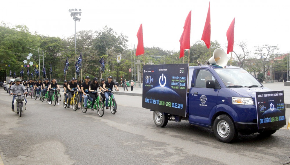 Hưởng ứng chiến dịch Giờ Trái đất năm 2019 với thông điệp ” Save Energy Save Earth – Tiết kiệm năng lượng – bảo vệ trái đất”, sáng 29-3, đoàn thanh niên công ty điện lực Hải Phòng tổ chức diễu hành bằng xe đạp qua các tuyến phố chính của thành phố, tuyên truyền về ý nghĩa của chương trình và kêu gọi mọi người nâng cao ý thức tiết kiệm năng lượng.