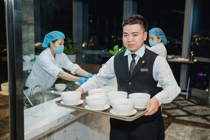 Trong dạ tiệc “Dolce Vita giữa tầng mây” tối qua tại khách sạn cao nhất Đông Nam Á – Vinpearl Luxury Landmark 81 – 40 thực khách đặc biệt đã được chứng kiến màn “so tài” vui vẻ giữa “cha đẻ” thương hiệu Phở Thìn và bếp trưởng nổi tiếng thế giới David Rocco, “linh hồn” của chương trình ẩm thực trên truyền hình được phát sóng hơn 150 quốc gia.