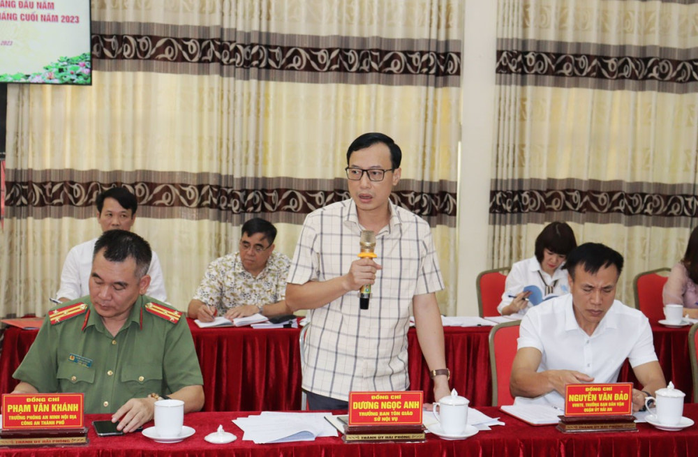 Về nhiệm vụ 6 tháng cuối năm 2023, đồng chí Trưởng Ban Dân vận Thành ủy đề nghị Ban Dân vận các cấp ủy, MTTQ Việt Nam và các tổ chức chính trị-xã hội các cấp tiếp tục tăng cường công tác nắm bắt tình hình, tuyên truyền, vận động đoàn viên, hội viên, Nhân dân, người lao động thực hiện các chủ trương của Đảng, chính sách, pháp luật của Nhà nước với những mục tiêu, chỉ tiêu cụ thể; tăng cường các hoạt động giám sát và phản biện xã hội. Tập trung hướng dẫn, đôn đốc các địa phương, đơn vị thực hiện phong trào thi đua “Dân vận khéo” trên các lĩnh vực của đời sống xã hội; đôn đốc đẩy nhanh tiến độ cấp giấy chứng nhận quyền sử dụng đất cho các cơ sở tôn giáo trên địa bàn thành phố. Làm tốt công tác đào tạo, bồi dưỡng nâng cao trình độ chuyên môn nghiệp vụ cán bộ hệ thống dân vận. Chỉ đạo triển khai công tác chuẩn bị tổ chức Đại hội MTTQ Việt Nam các cấp nhiệm kỳ 2024-2029. Đồng chí cũng đề nghị các lực lượng vũ trang thành phố tham mưu thực hiện có hiệu quả kế hoạch phối hợp công tác dân vận năm 2023; làm tốt công tác nắm tình hình; xây dựng, nhân rộng các mô hình “Dân vận khéo” gắn với triển khai thực hiện các nhiệm vụ chuyên môn…