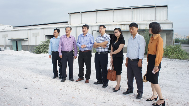 Phó Chủ tịch Ủy ban MTTQ Việt Nam thành phố Vũ Anh Thư cùng đoàn giám sát kiểm tra thực địa tại bãi chứa bã thải thạch cao
