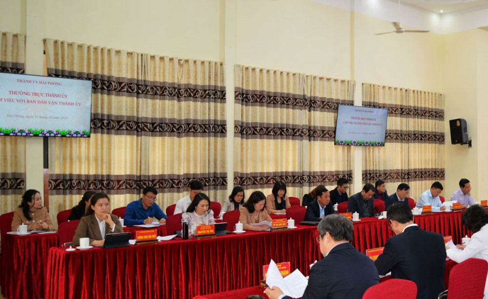 Thực hiện Nghị quyết Đại hội Đảng bộ thành phố lần thứ XVI, Ban Dân vận Thành ủy đã tập trung đổi mới, nâng cao chất lượng công tác tham mưu chỉ đạo triển khai công tác dân vận. Nổi bật là: Tham mưu Ban Thường vụ Thành ủy ban hành Quyết định số 446-QĐ/TU, ngày 26/11/2021 về “Quy chế công tác dân vận của hệ thống chính trị tại thành phố Hải Phòng. Triển khai 2 đề tài nghiên cứu khoa học cấp thành phố làm căn cứ tham mưu Ban Thường vụ Thành ủy ban hành 2 chỉ thị để cụ thể hóa thực hiện quan điểm Đại hội Đảng bộ thành phố lần thứ XVI về công tác dân vận, phát huy quyền làm chủ của Nhân dân: Chỉ thị số 07-CT/TU, ngày 08/9/2021 về “Đẩy mạnh thực hiện công tác dân vận trong phòng ngừa và xử lý điểm nóng, vụ việc phức tạp trên địa bàn thành phố”; Chỉ thị số 15-CT/TU, ngày 21/11/2022 về đẩy mạnh thực hiện dân chủ theo phương châm “dân biết, dân bàn, dân làm, dân kiểm tra, dân giám sát, dân thụ hưởng”.