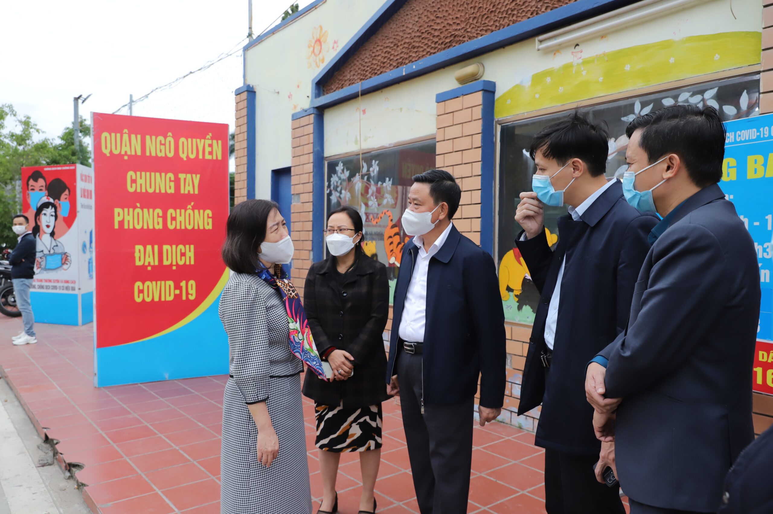 Đồng chí yêu cầu quận Ngô Quyền tiếp tục đẩy nhanh tiến độ tiêm mũi 1, mũi 2 vắc xin phòng COVID-19 để đảm bảo tỷ lệ bao phủ vắc xin cho người dân trên địa bàn quận, đồng thời yêu cầu các điểm tiêm chủng phải đảm bảo điều kiện, thực hiện đúng quy trình, quy định tiêm chủng Bộ Y tế đã ban hành, sàng lọc bệnh nhân trước khi tiêm…