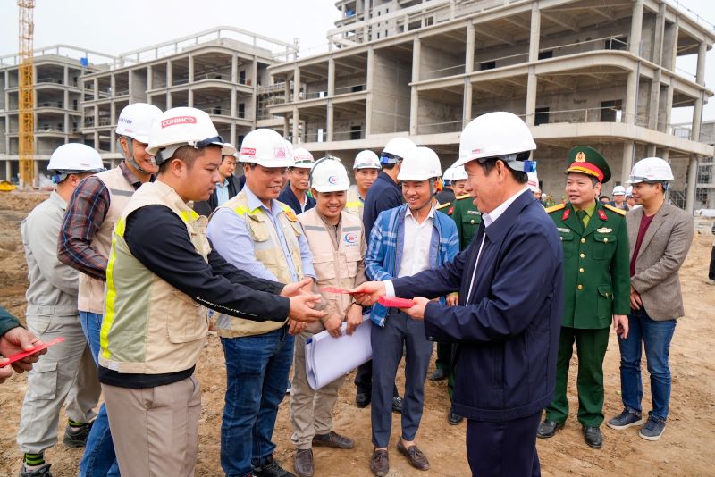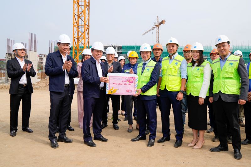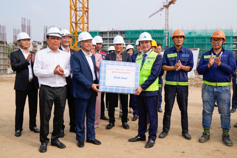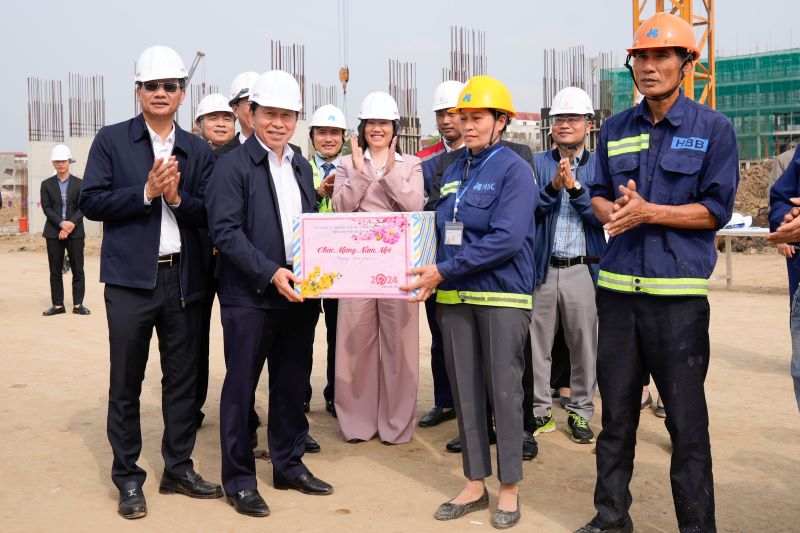 Động viên, chúc mừng cán bộ, nhân viên, người lao động trên công trường, đồng chí Bí thư Thành ủy lưu ý cần chú trọng bảo đảm tiến độ, chất lượng, kỹ, mỹ thuật; bảo đảm an toàn tuyệt đối; chỉ đạo UBND thành phố; các ngành thành phố; huyện Thủy Nguyên quan tâm tạo mọi điều kiện thuận lợi; tháo gỡ khó khăn, vướng mắc liên quan tới điều chỉnh chủ trương đầu tư; bố trí đầy đủ nguồn vốn đầu tư công theo kế hoạch đã được duyệt, phấn đấu hoàn thành công trình trước tháng 5- 2025 để tổ chức các sự kiện lớn trong năm 2025 của thành phố và di chuyển các cơ quan Đảng, chính quyền, đoàn thể sang khu vực bắc sông Cấm.