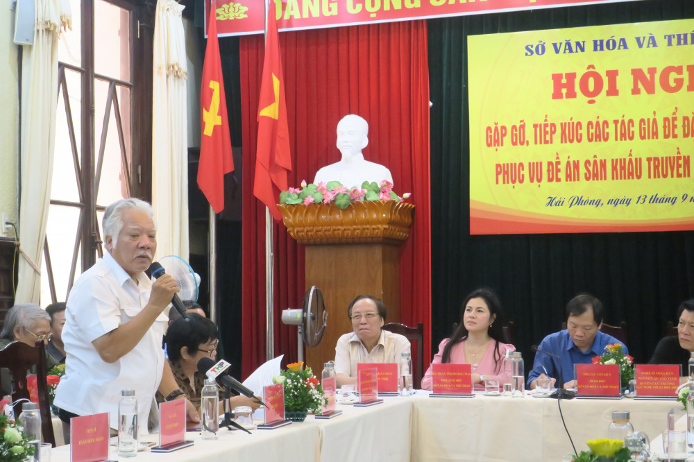 Đó là đánh giá của một số tác giả tham dự chương trình gặp mặt, tiếp xúc do Sở Văn hóa và Thể thao Hải Phòng tổ chức vào sáng 13/9, nhằm cung cấp thông tin và đặt hàng, lựa chọn các tác phẩm sân khấu phục vụ Đề án Sân khấu truyền hình Hải Phòng.