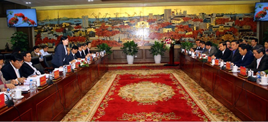 Tiếp và làm việc với đoàn có các đồng chí: Nguyễn Văn Tùng, Chủ tịch UBND thành phố; Đặng Bá Cường, Trưởng Ban Nội chính Thành ủy; Nguyễn Văn Thành, Phó chủ tịch UBND thành phố; Bùi Thanh Tùng, Phó trưởng Đoàn đại biểu Quốc hội Hải Phòng; đại diện lãnh đạo các ngành, địa phương.