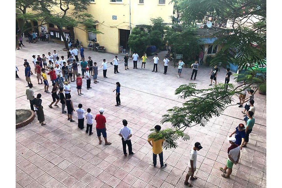 Đoàn thanh niên phường Lạch Tray (quận Ngô Quyền) tổ chức sinh hoạt hè tại sân Trường THCS Nguyễn Đình Chiều.