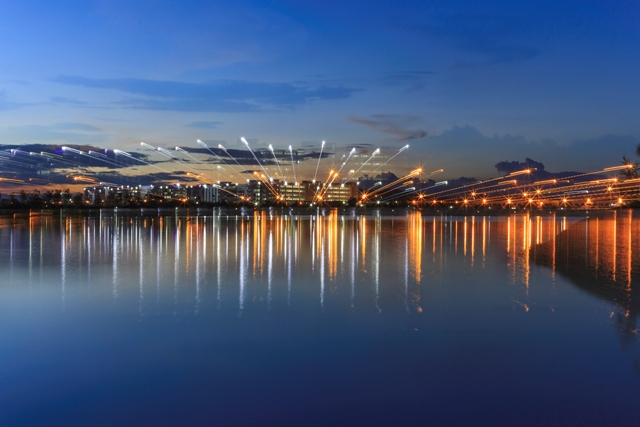 Điểm thứ nhất là Bờ hồ Tam Bạc và sân thượng Nhà triển lãm thành phố. Trong đó, pháo hoa tầm cao bắn ở lòng đường giữa Hồ Tam Bạc và Nhà triển lãm thành phố, số lượng 500 quả; pháo hoa tầm thấp bắn trên nóc Nhà triển lãm thành phố, số lượng 120 giàn.
