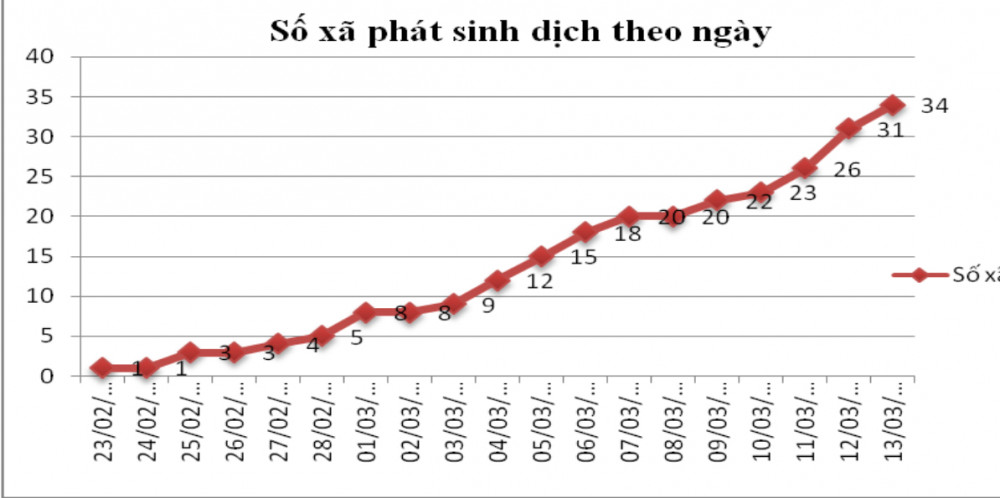 Biểu đồ, số xã phát sinh dịch tả lợn Châu Phi theo ngày
