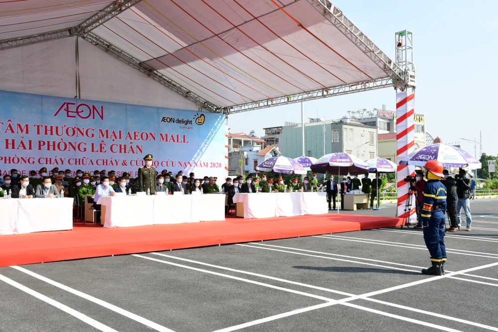 Sáng 3-11, Công an thành phố Hải Phòng phối hợp Công ty TNHH Aeon Mall Việt Nam tổ chức diễn tập phương án chữa cháy và cứu nạn, cứu hộ tại Trung tâm thương mại Aeon Mall Lê Chân-Hải Phòng.