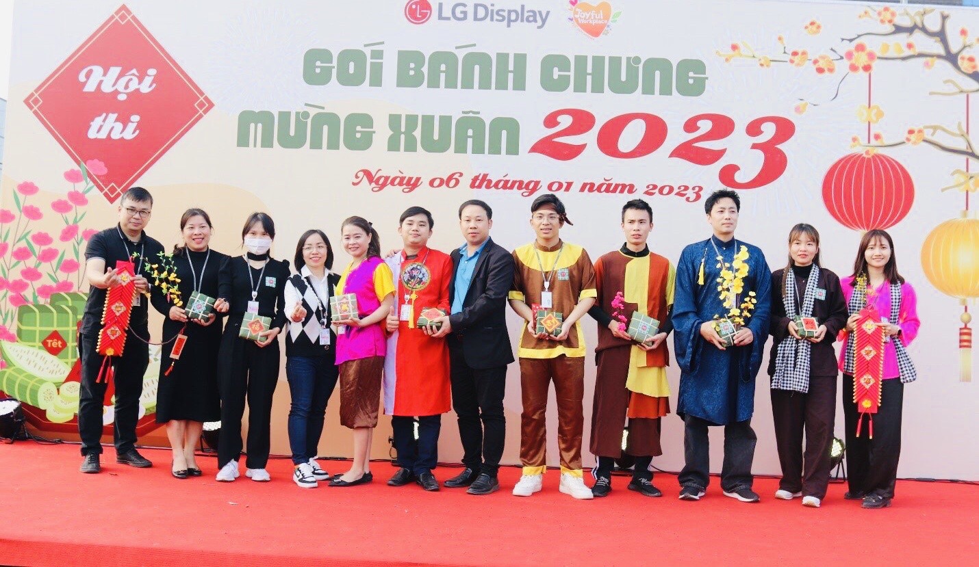 Chiều 6/1, tại Sân bóng Ký túc xá công ty LG Display Việt Nam Hải Phòng, Khu công nghiệp Tràng Duệ, huyện An Dương, thành phố Hải Phòng, Công ty LG Display Việt Nam Hải Phòng tổ chức khai mạc “Hội thi gói bánh chưng 2023” chào đón xuân Quý Mão, điểm nhấn giao lưu văn hóa Việt-Hàn trong đông đảo cán bộ, người lao động lao động công ty.