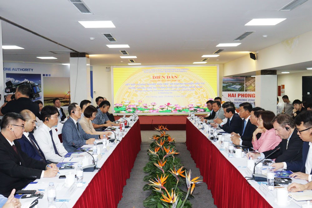 Phát biểu khai mạc Diễn đàn, Phó Chủ tịch UBND thành phố Nguyễn Đức Thọ nêu rõ, Diễn đàn là sáng kiến hiệu quả và càng có ý nghĩa hơn khi được tổ chức vào đúng dịp kỷ niệm 30 năm ngày thành lập Ban Quản lý Khu kinh tế Hải Phòng. Diễn đàn sẽ là một hoạt động kết nối có ý nghĩa thiết thực để các doanh nghiệp trong nước và các nhà đầu tư nước ngoài cùng trao đổi cởi mở về nhu cầu, tiềm năng, lợi thế của nhau, trên cơ sở đó nhận diện những cơ hội đầu tư mới, có kế hoạch, biện pháp thúc đẩy hợp tác vì lợi ích của chính các doanh nghiệp và cũng vì sự phát triển kinh tế-xã hội thành phố. Đây cũng là cơ hội để các doanh nghiệp công nghiệp hỗ trợ và cung ứng dịch vụ, đào tạo… trong nước học hỏi kinh nghiệm quản trị, điều hành và phát triển sản xuất, kinh doanh của các doanh nghiệp có vốn đầu tư nước ngoài, kết nối nhu cầu mua/bán nhằm mục tiêu tham gia vào chuỗi cung ứng toàn cầu của các “ông lớn” FDI. Đồng thời, thúc đẩy hợp tác chuyển giao công nghệ giữa các doanh nghiệp trong tương lai.