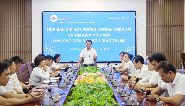 Sáng 17/7, Ban Chỉ Huy Phòng chống thiên tai và Tìm kiếm cứu nạn (PCTT&TKCN) Công ty TNHH MTV Điện lực Hải Phòng tổ chức họp triển khai nhiệm vụ phòng chống cơn bão số 1. Ông Nguyễn Hữu Hưởng, Chủ tịch kiêm Giám đốc Công ty, Trưởng Ban Chỉ huy PCTT& TKCN Công ty chủ trì Hội nghị.